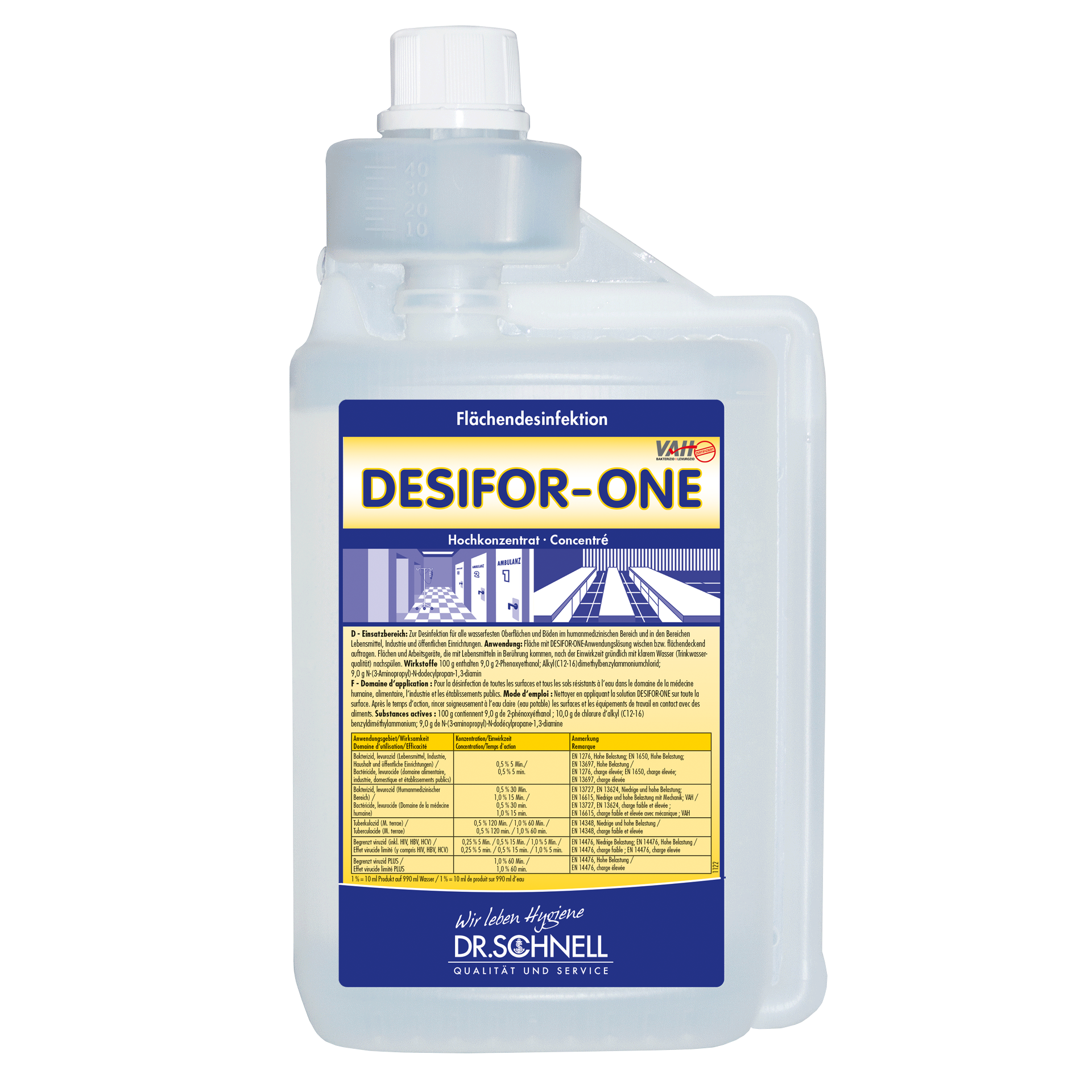 Zur Desinfektion für alle wasserfesten Oberflächen und Böden im humanmedizinischen Bereich und in den Bereichen Lebensmittel, Industrie und öffentlichen Einrichtungen. Nur für den professionellen Gebrauch.