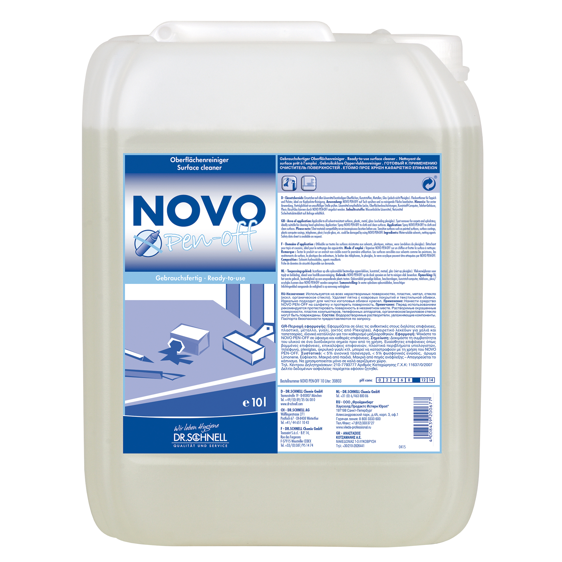 NOVO PEN OFF auf Tuch sprühen und zu reinigende Fläche bearbeiten.