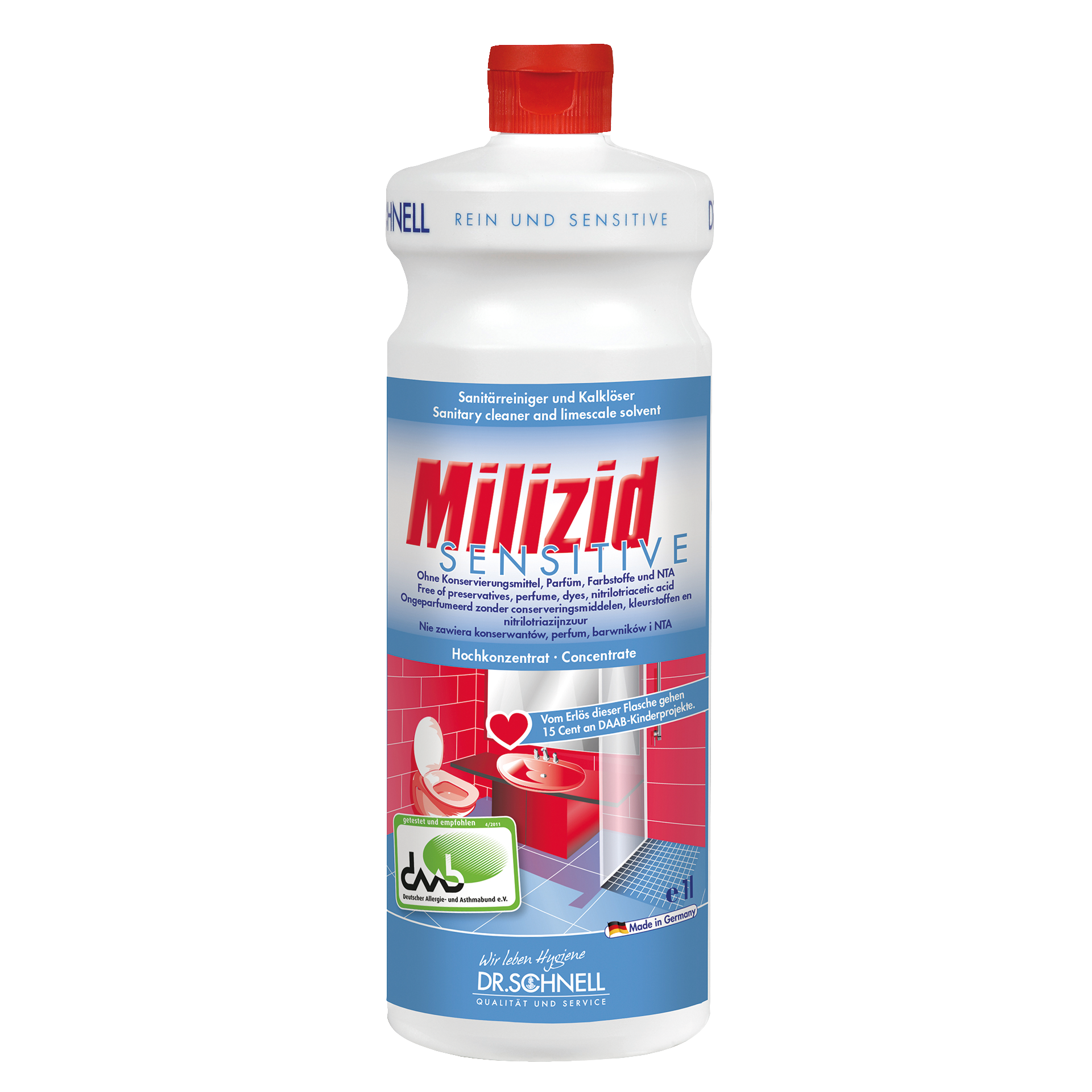 Duft-, farbstoff-, konservierungsmittelfreier Sanitärreiniger und Kalklöser