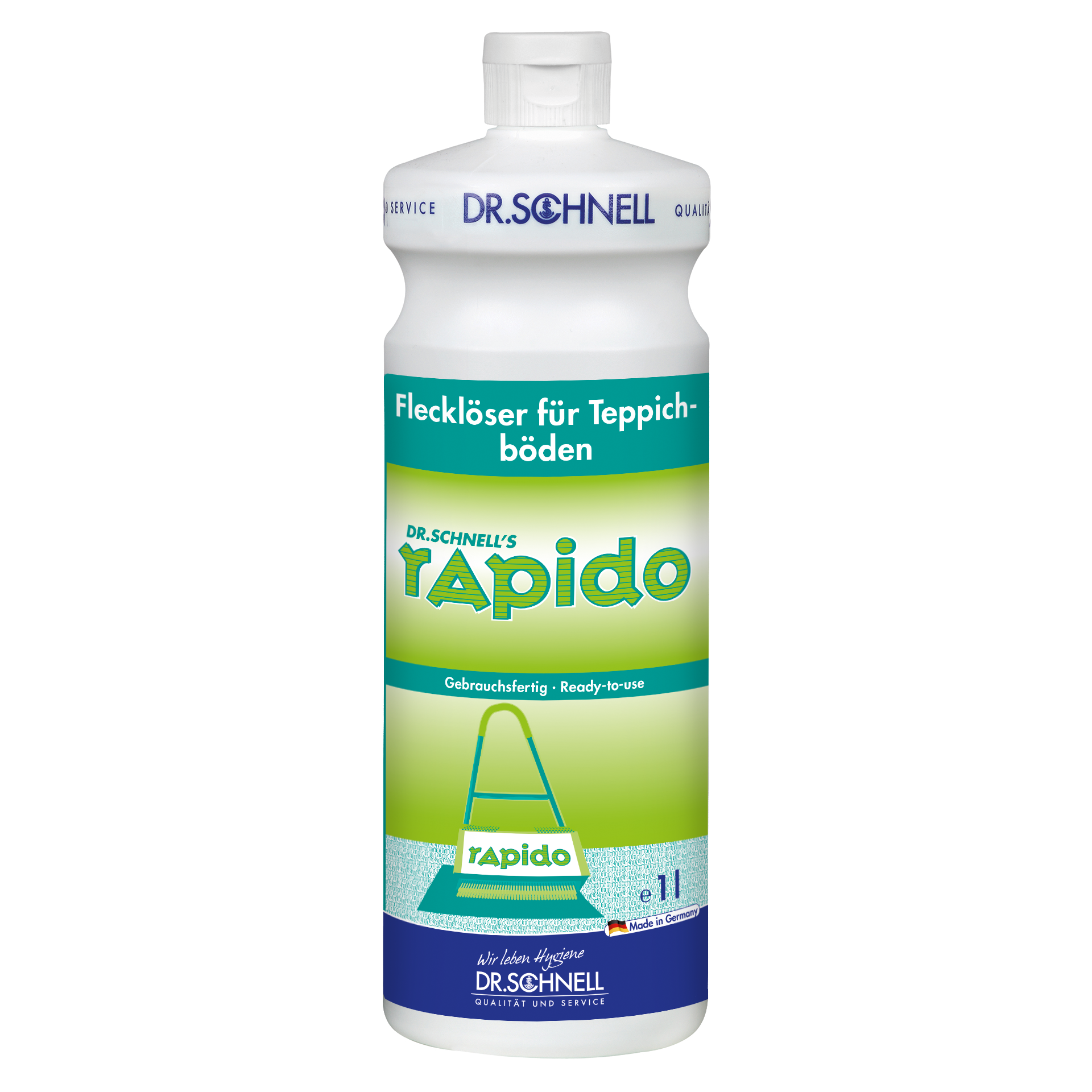Zur punktuellen Fleckentfernung (Detachur) und Vorbehandlung stark verschmutzter, wasserbeständiger, textiler Beläge und Polster im DR.SCHNELL RAPIDO Teppichreinigungssystem.