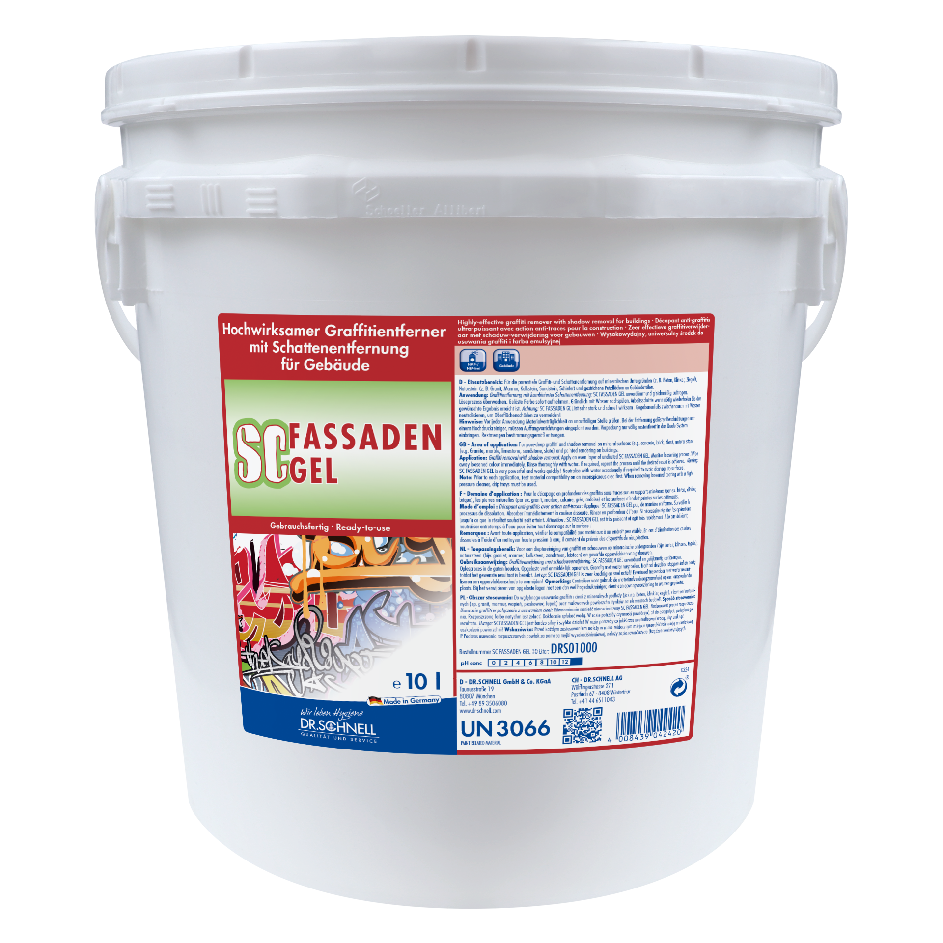 SC FASSADEN GEL unverdünnt, gleichmäßig und satt auftragen. Löseprozess überwachen. Nach Einsetzen des Löseprozesses Graffiti ggf. mit geeigneter Mechanik bearbeiten. Gelöste Farbe sofort gründlich entfernen. Als letzten Schritt gereinigte Fläche mit reichlich Wasser nachspülen. Arbeitsschritte wenn nötig wiederholen, bis das gewünschte Ergebnis erreicht ist.