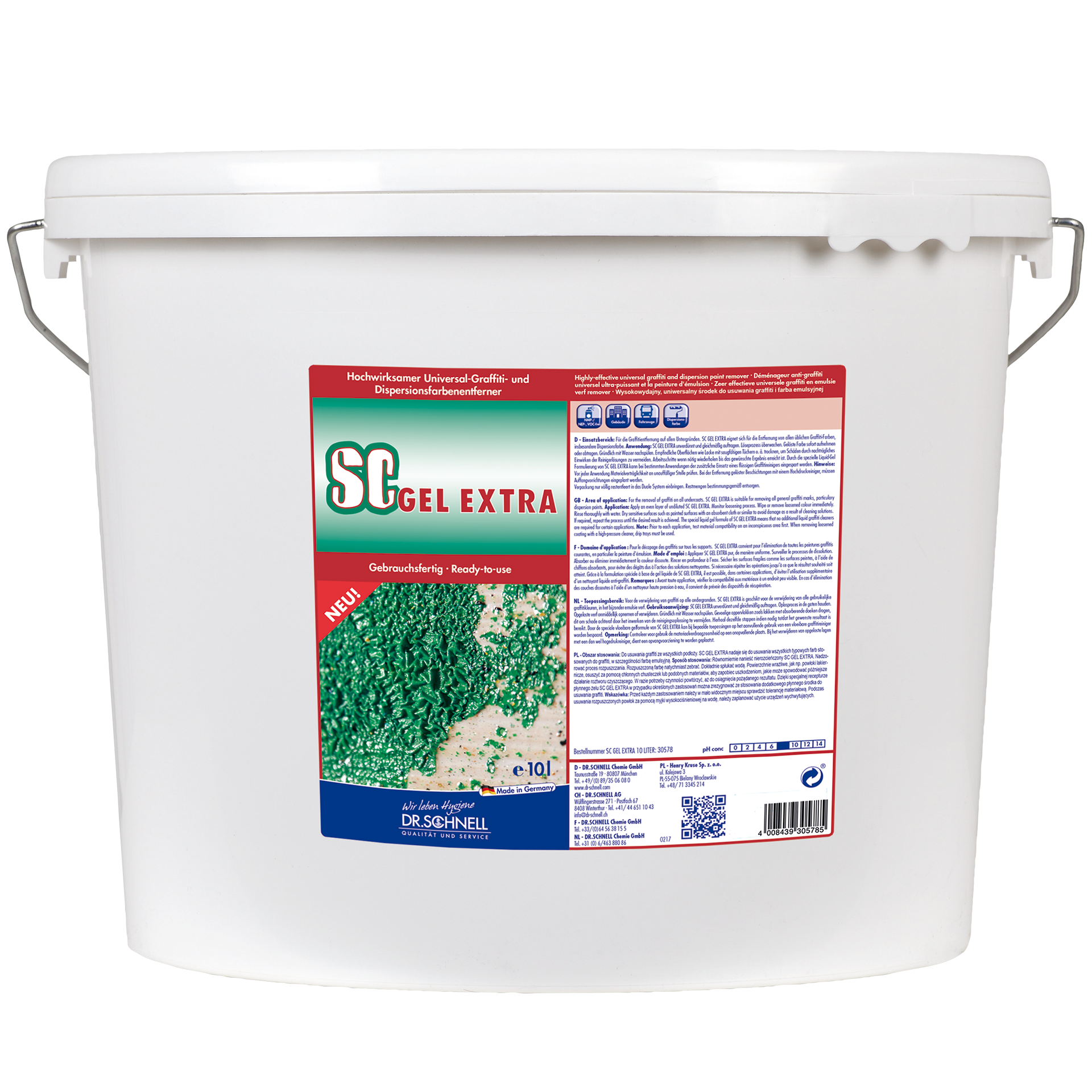 SC GEL EXTRA unverdünnt, gleichmäßig und satt auftragen. Löseprozess überwachen. Nach Einsetzen des Löseprozesses Graffiti ggf. mit geeigneter Mechanik bearbeiten. Gelöste Farbe sofort gründlich entfernen. Als letzten Schritt gereinigte Fläche mit reichlich Wasser nachspülen. Empfindliche Oberflächen wie z.B. Lacke nach der Reinigung mit saugfähigen Tüchern o. Ä. trocknen, um Schäden durch nachträgliches Einwirken des Reinigers zu vermeiden. Arbeitsschritte wenn nötig wiederholen, bis das gewünschte Ergebnis erreicht ist.