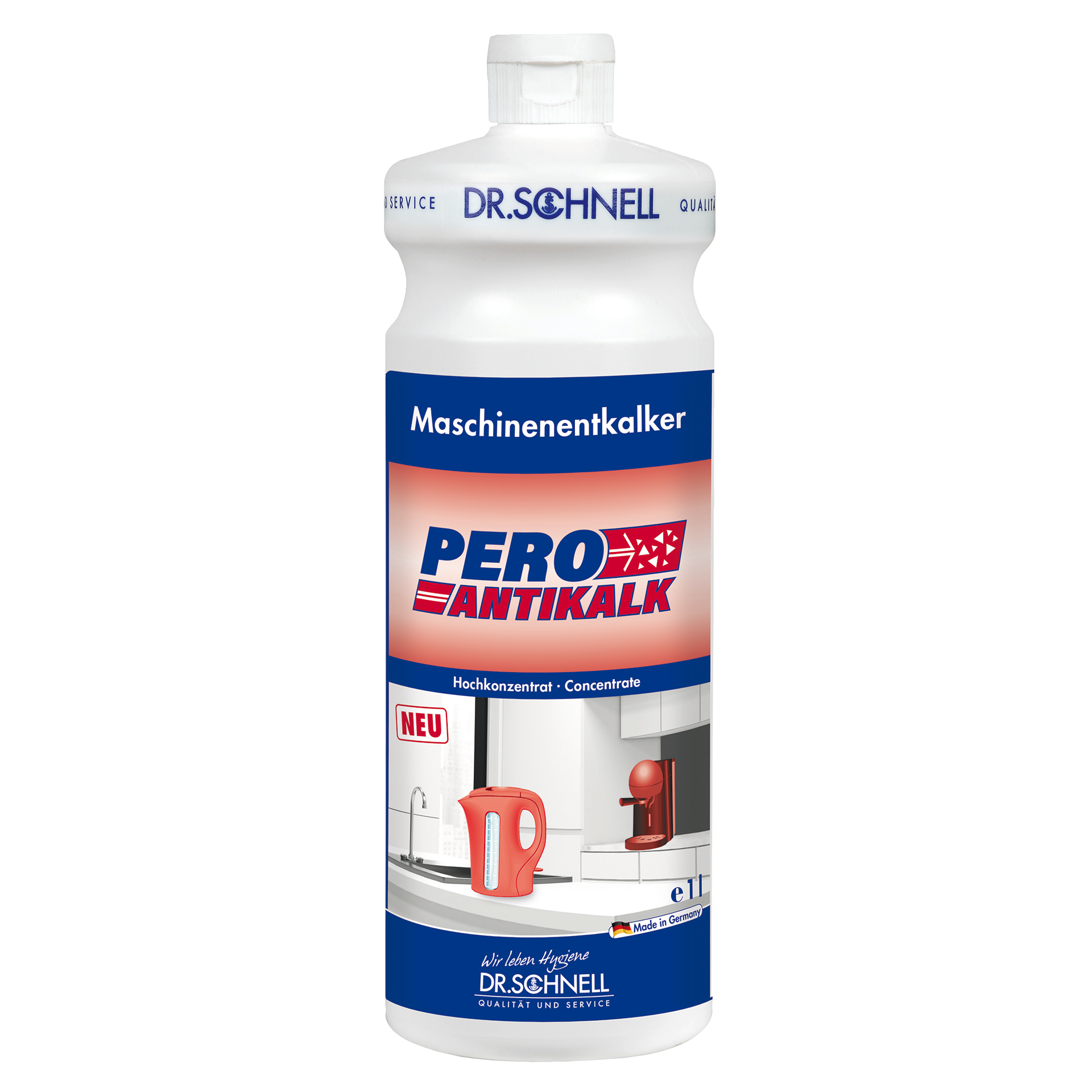 Entkalker für Kleingeräte wie Heißwasserbereiter und Kaffeemaschinen. Die materialschonende Formulierung ermöglicht eine regelmäßige Anwendung, um weitere Kalkaufbauten zu verhindern.