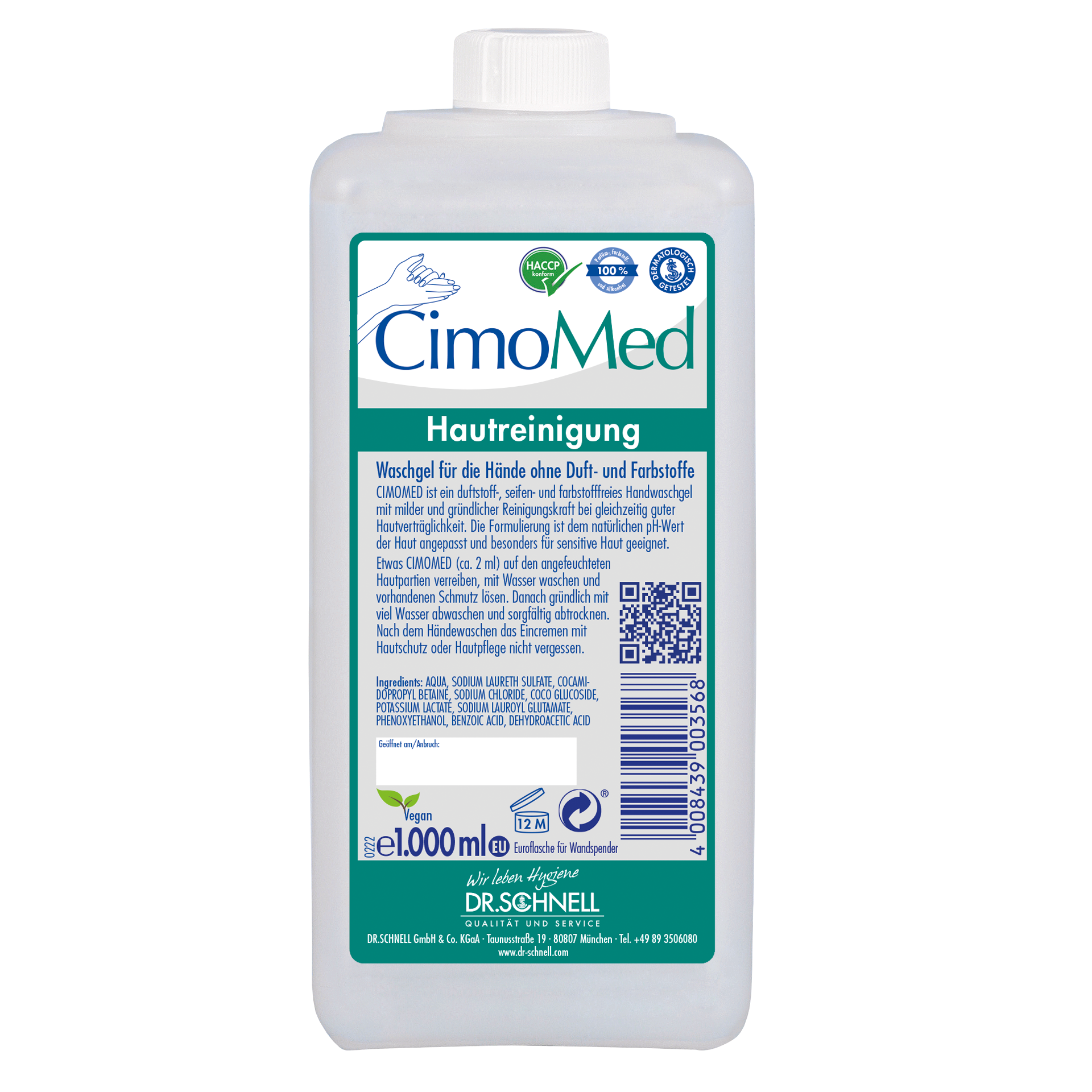CimoMed ist ein duftstoff-, seifen- und farbstofffreies Handwaschgel mit milder und gründlicher Reinigungskraft bei gleichzeitig guter Hautverträglichkeit. Die Formulierung ist dem natürlichen pH-Wert der Haut angepasst und besonders für sensitive Haut geeignet.