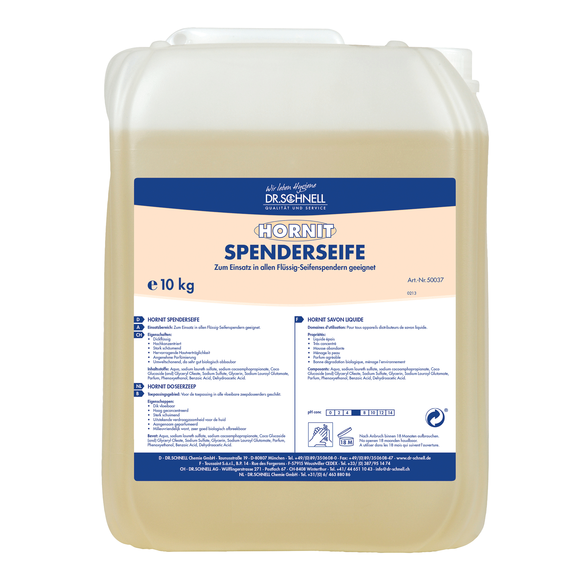 HORNIT SPENDERSEIFE ist eine hautmilde Waschlotion zum Einsatz in nachfüllbaren Flüssigseifenspendern für die schonende Hautreinigung mit einer hochwertigen Reinigungs-Pflege-Formel.