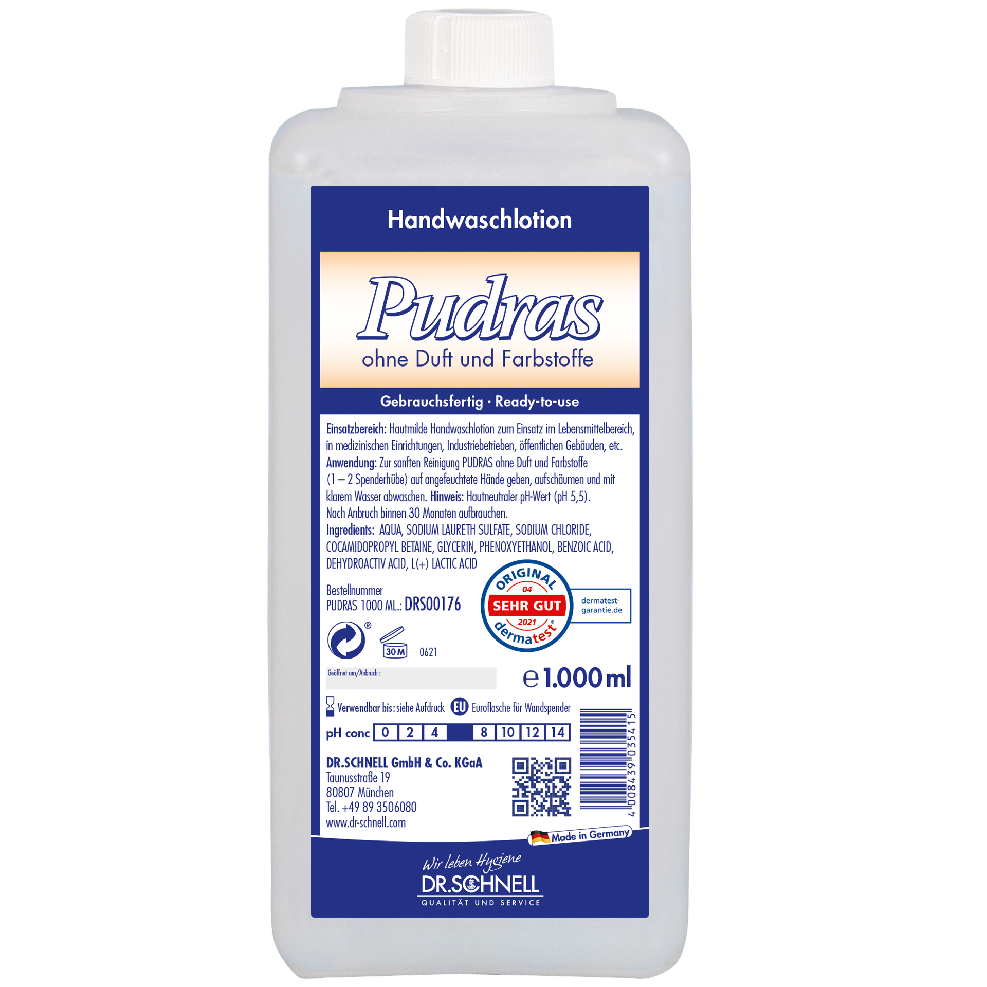 Pudras ohne Duft- und Farbstoffe ist zum Einsatz in nachfüllbaren Flüssigseifenspendern konzipiert. Die Spenderflasche EURO kann in den EURO-Spendersystemen und mit dem passenden Dispenser eingesetzt werden. Die pH-hautneutrale Formulierung zeichnet sich durch ihre ausgesprochene Hautverträglichkeit aus und eignet sich gut zum Einsatz in sensitiven Bereichen.